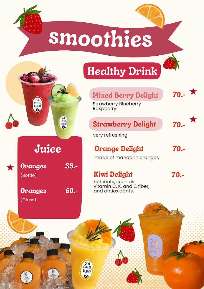 24 Coffee & Bakery serves an array of beverages that caters to various palates. From the unique flavor profiles of their coffees to smooth, refreshing blends, you can indulge in delightful drinks such as the Caramel Macchiato—an absolute favorite among regulars for its rich caramel aroma and satisfying experience. For those seeking something light and delicious, the Green Tea Coconut is both refreshing and decadent, securing its place in the hearts of many customers.